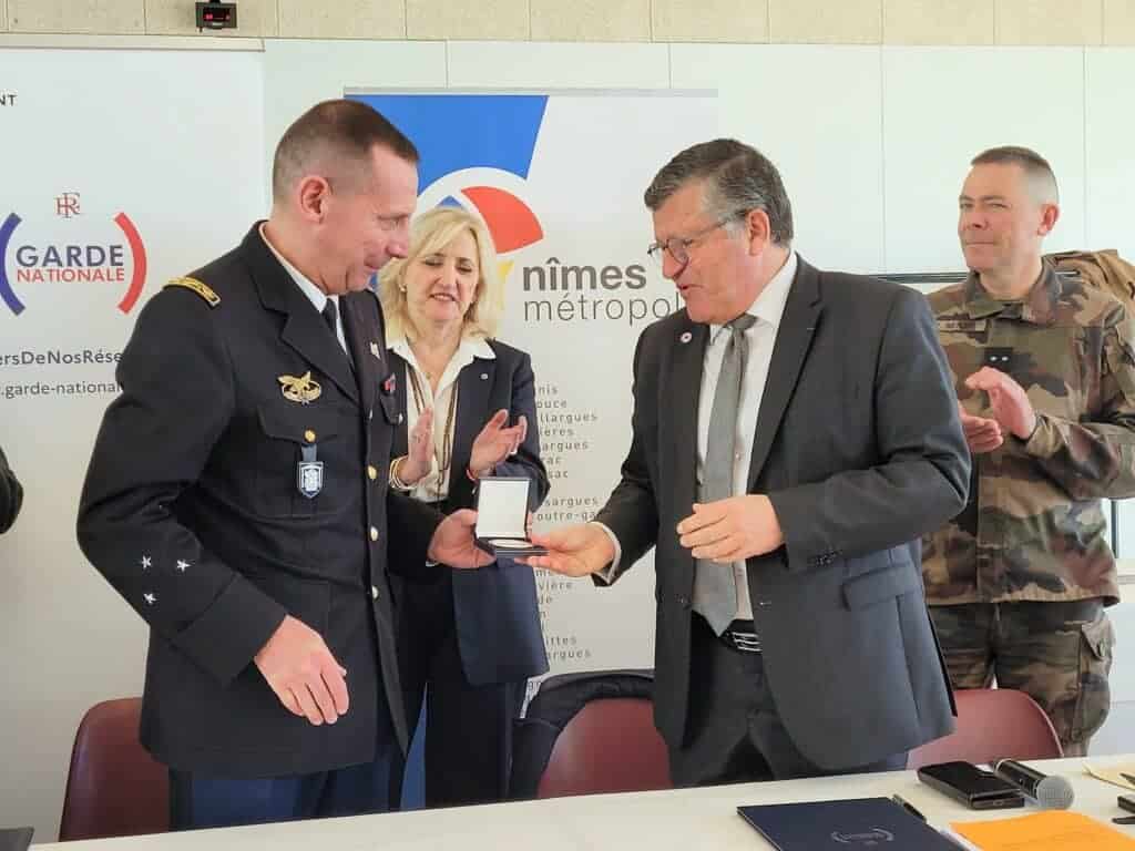 « La fragilité du contexte géopolitique nous rappelle combien cet engagement est important », entame Franck Proust, président de Nîmes Métropole, devant un auditoire d’édiles gardois réunis au foyer socio-culturel de Cabrières. A ses côtés, Louis-Mathieu Gaspari, secrétaire général de la Garde nationale, loue l’engagement des femmes et hommes de 17 à 72 ans qui décident « de donner un peu de leur temps pour être utile à leur pays ». Une convention à l’initiative de Françoise Dumas, conseillère auprès de la Garde nationale, qui a porté ce projet auquel Franck Proust a tout de suite adhéré. Le partenariat est signé pour un an renouvelable jusqu’à cinq ans, et participe au « rayonnement de l’esprit de la Défense au sein de la sphère socio-économique », des mots du président.