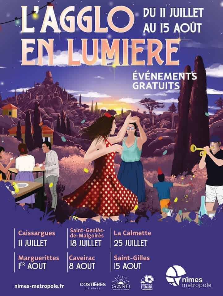 Une programmation culturelle et festive aura lieu du 11 juillet au 15 août. C’est une nouvelle édition qui débutera dans les arènes de Caissargues. « L’Agglo en lumière » est un spectacle lumineux avec des dégustation locales, des concerts et des performances artistiques. C’est un événement gratuit, qui a pour but de « mettre en valeur le patrimoine et les multiples richesses de notre territoire ».
