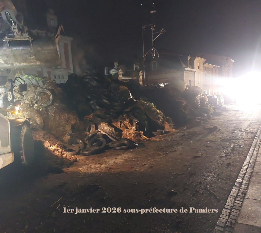 Jeudi 1er janvier 2026, dans la soirée, la Coordination rurale de l’Ariège, a mené trois actions dites « symboliques » devant la préfecture de Foix, ainsi que les sous-préfectures de Pamiers et de Saint-Girons. 113 bennes de déchets ont été déversées, en écho aux « 113 vaches qui seront abattues aujourd’hui à Léran. 113 vies sacrifiées, 113 bennes pour rappeler la gravité de la situation et l’injustice vécue par notre profession », justifie le syndicat sur Facebook ce vendredi 2 janvier.