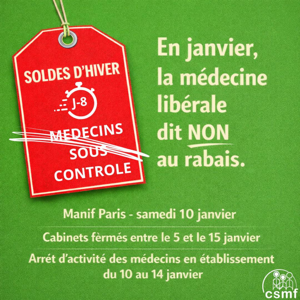 Du 5 au 15 janvier, vous risquez de tomber sur un cabinet clos. Les six syndicats de médecins libéraux et internes appellent généralistes et spécialistes à reporter leurs rendez-vous et à fermer leurs cabinets. Un grand rassemblement est par ailleurs prévu le 10 janvier à Paris. « Jamais un gouvernement n’avait accumulé autant d’attaques »