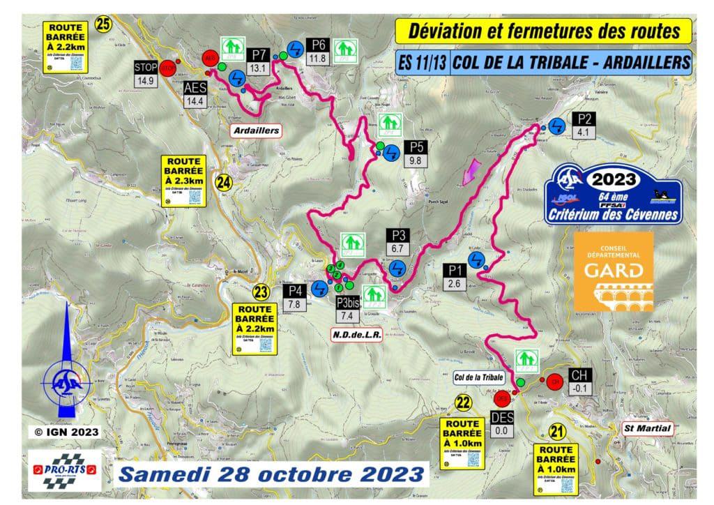 - Le 14ème Critérium des Cévennes Historique, qui comptera 11 épreuves spéciales pour un total de 150,4 km.