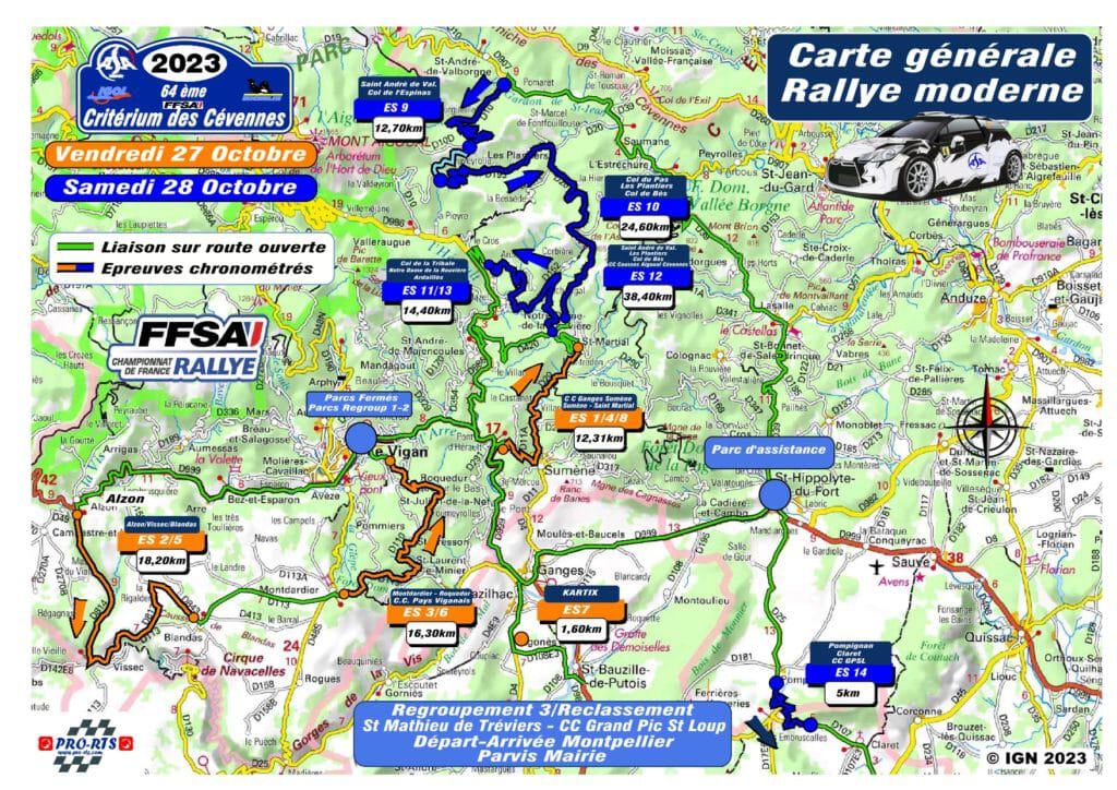 Le 64ème Critérium des Cévennes se déroulera du 26 au 28 octobre 2023 À Montpellier et dans le Cévennes. Cette épreuve, qui compte pour le Championnat de France des Rallyes (CFR) et la Coupe de France, se déroulera sur un parcours de 776,73 km, dont 217,93 km d’épreuves spéciales chronométrées.