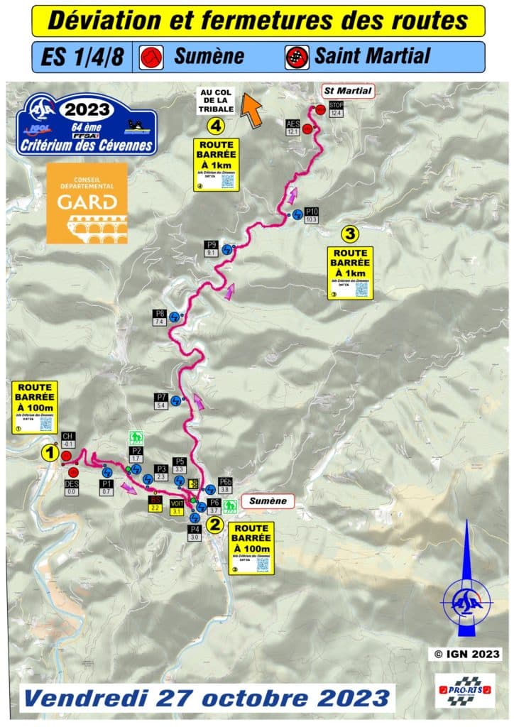 Le parcours du 64ème Critérium des Cévennes sera concentré sur 2 jours, avec 14 épreuves spéciales chronométrées. Les spéciales seront réparties en deux étapes de 5 spéciales chacune. L’étape 1 se déroulera le vendredi 27 octobre, et l’étape 2 le samedi 28 octobre.