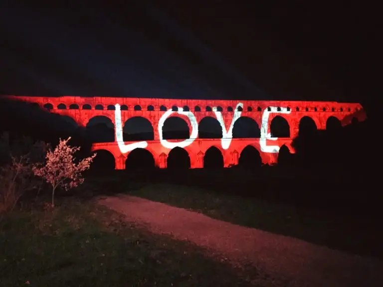 Des petits mots d’amour projetés sur la façade du pont du Gard sont à découvrir. Une vidéo projection de l’exposition « De l’amour » qui se déroule jusqu’au 30 septembre 2022 sur le site du Pont du Gard !