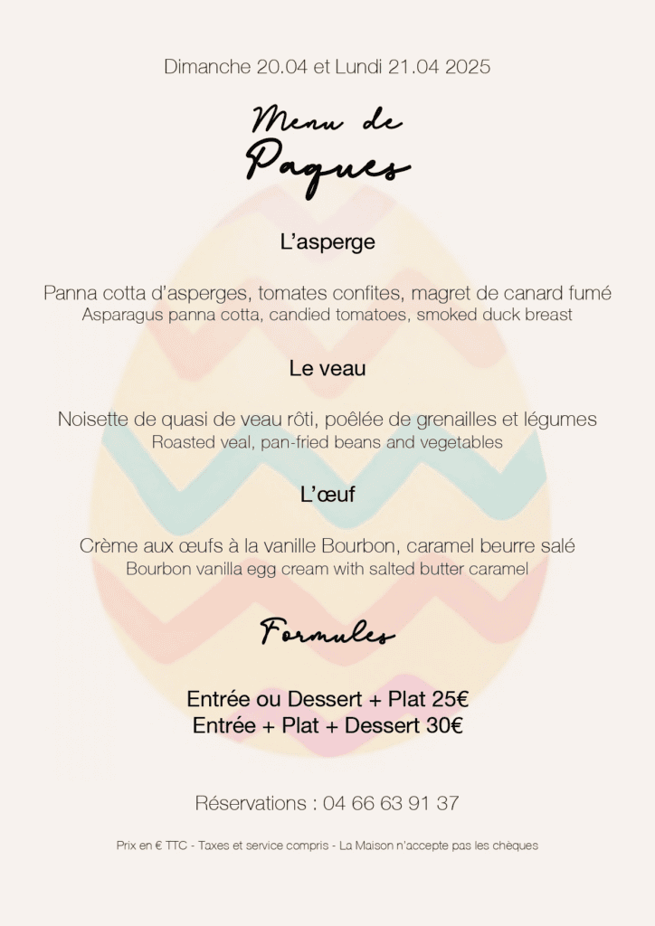 N’oubliez pas de réserver votre panier pique-nique auprès de Bienvenue à la ferme. Participation de 18€ par personne. Réservation à venir. Pensez à réservez également votre table au restaurant Les Terrasses au 04.66.63.91.37. Un menu spécial pour Pâques au Pont vous sera proposé. Programme 2025 complet, cliquez ici.