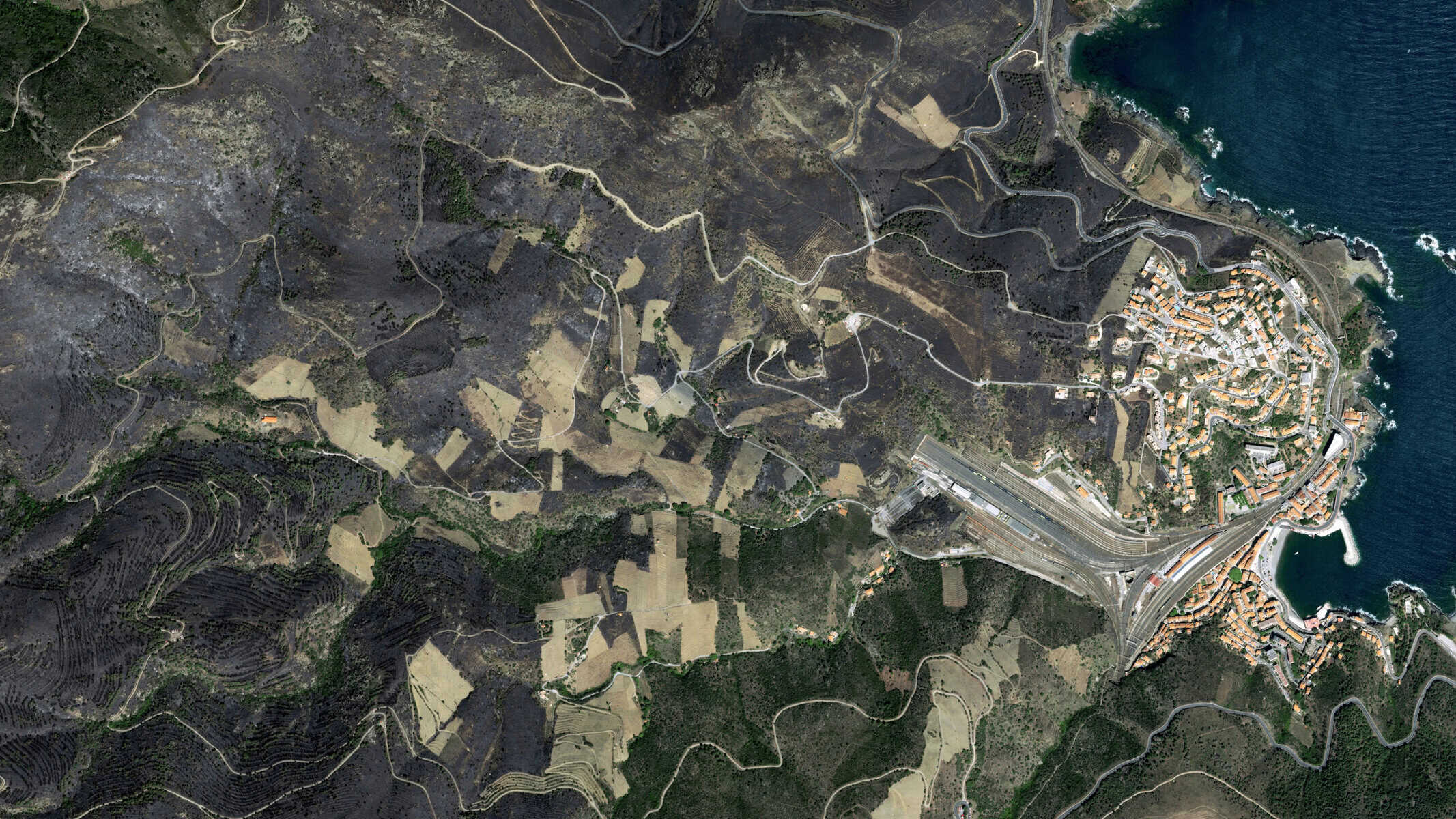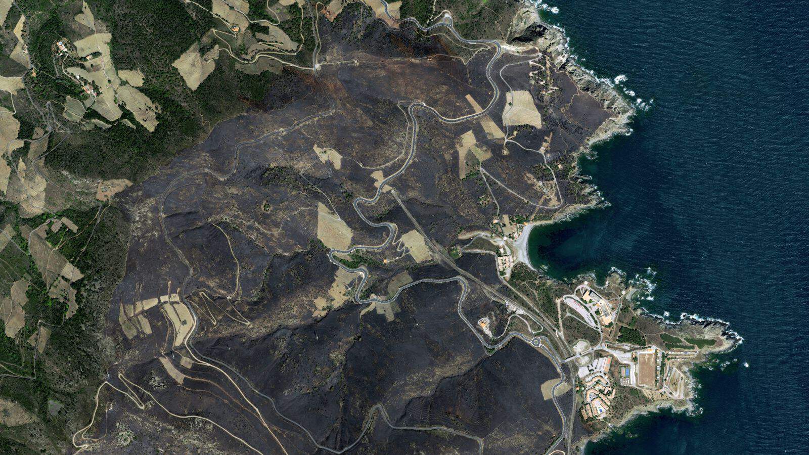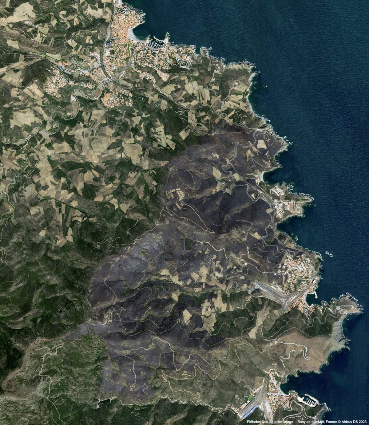 Les dégâts impressionnants de l’incendie de Cerbère et de Banyuls-sur-Mer ont été vus par le satellite Pléiades Neo d’Airbus.