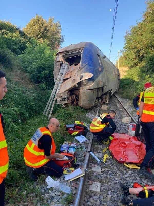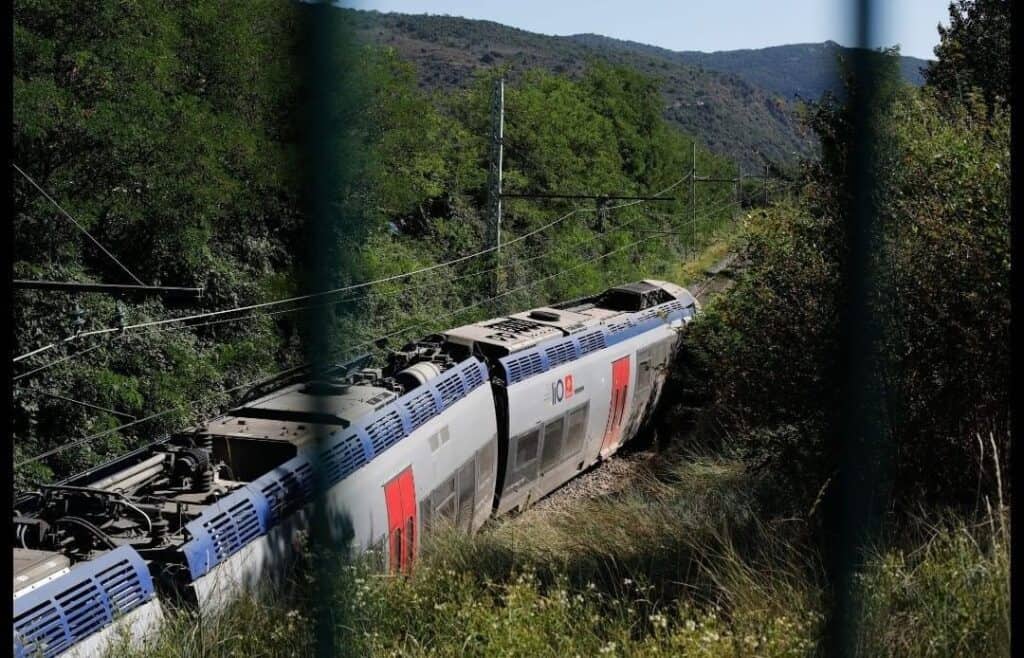 Dans la matinée du mercredi 24 juillet, un train a déraillé dans les Pyrénées-Orientales sur l’axe Perpignan-Villefranche-Vernet-les-Bains, près de la commune d’Eus. Cinq blessés légers, parmi les neufs passagers au total, sont à déplorer. Plus de peur que de mal pour les usagers, notamment au regard des dégâts causés par l’accident, comme le témoignent ces images publiées dans un article de nos confrères de France Bleu Roussillon.
