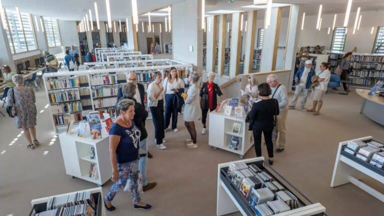 Beaucoup de monde le samedi 4 octobre dernier, à Balaruc-les-Bains, pour l’inauguration de la nouvelle médiathèque baptisée « Olympe de Gouges ». Ce nouvel équipement (6 082 920 M€*) livré en remplacement de l’ancienne bibliothèque de 200m², rejoint donc le réseau des médiathèques de Sète agglopôle méditerranée, qui compte 5 autres établissements (deux à Sète, un à Frontignan, un à Mèze et un à Marseillan) ainsi que deux kiosques de réservations (à Mireval et Montbazin).