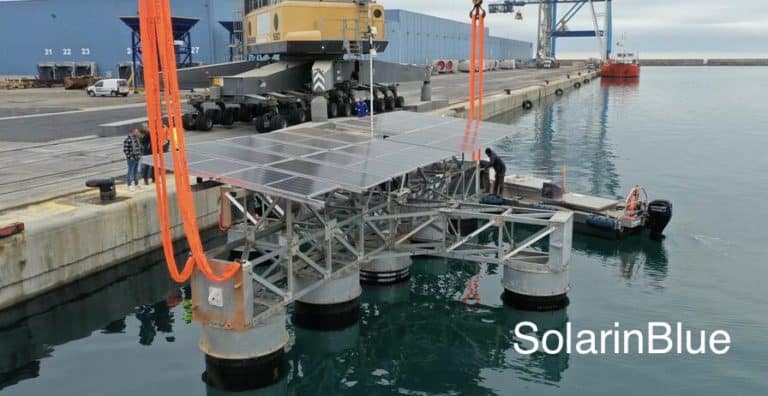Le démonstrateur SolarinBlue, qui a obtenu toutes les autorisations nécessaires après étude d’impact, a été mis à l’eau au port de Sète le 17 mars. D’une puissance de 300 kWc, il comprend 25 unités flottantes qui seront progressivement installées sur le port de commerce jusqu’à la fin de l’année 2023. Environ une trentaine d’entreprises locales ont participé aux différentes étapes du projet, notamment aux études environnementales, à la fourniture de matériaux, à l’assemblage, à la logistique et aux tests d’ancrage.