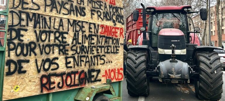 L’enquête concerne les dégradations occasionnées sur la rocade d’Albi (Tarn) par des agriculteurs dans le cadre de la mobilisation, en décembre 2025, contre les mesures prises par le gouvernement dans le cadre de la gestion de la crise de la DNC (dermatose nodulaire contagieuse). Le comité de soutien est arrivé avec 20 tracteurs, tous garés devant le commissariat.