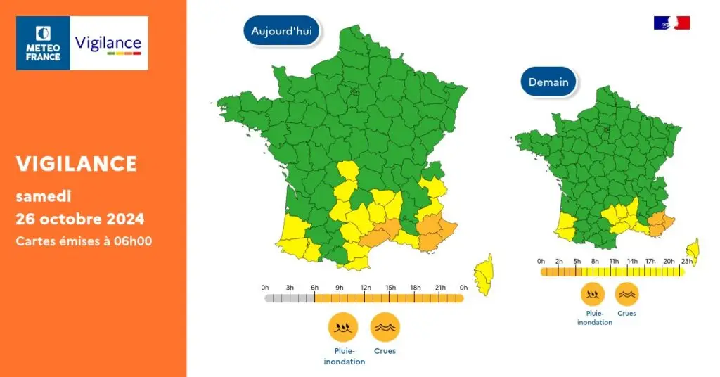Météo : vigilance orange pour ‘pluie-inondation’ pour l’Hérault et le Gard. À quoi s’attendre ce samedi 26 octobre 2024 ?